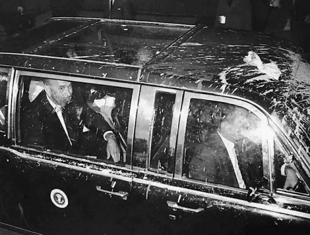 Лимузин президента США Линдона Джонсона, забросанный пакетами с краской во время протестов против войны во Вьетнаме, 1966 год.