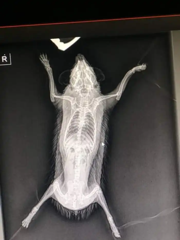 17. «Представляю вашему вниманию рентгеновский снимок ежика. Обратите внимание на уши и иглы»