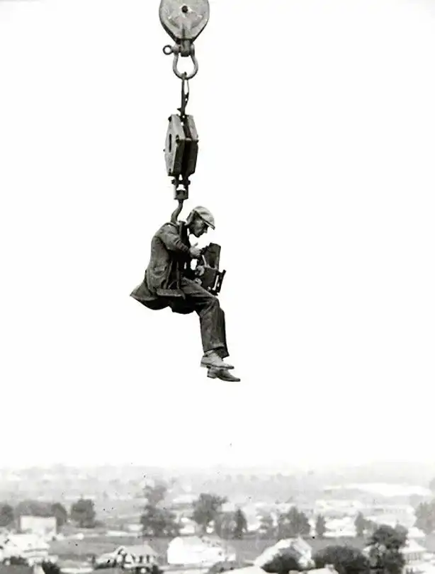 3. Фотограф с крана снимает вид сверху, США, 1930 год