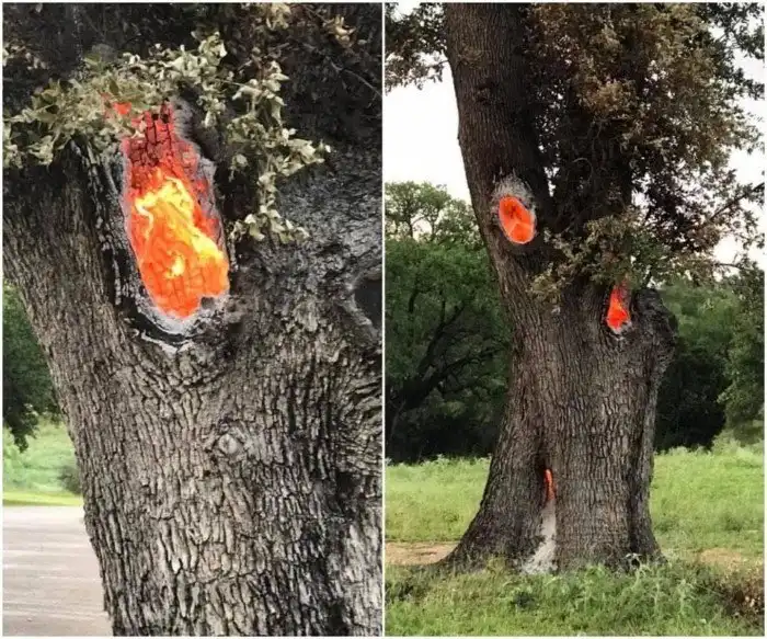 10. Молния попала в дерево, и теперь оно горит изнутри