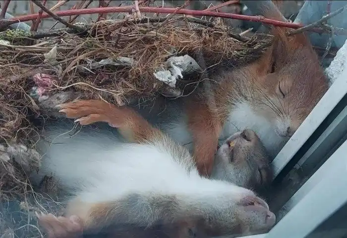 13. Белки свили гнездо прямо за окном