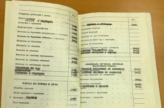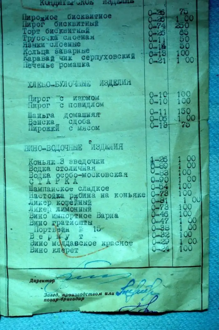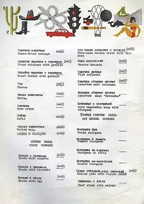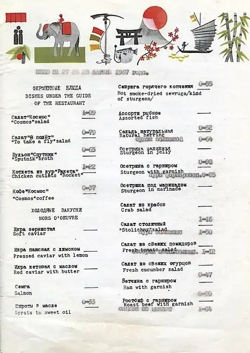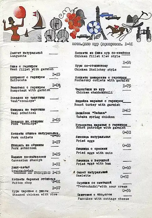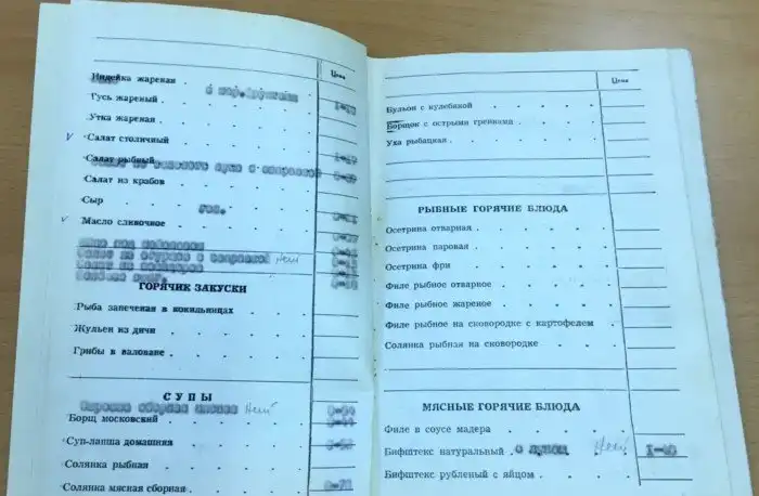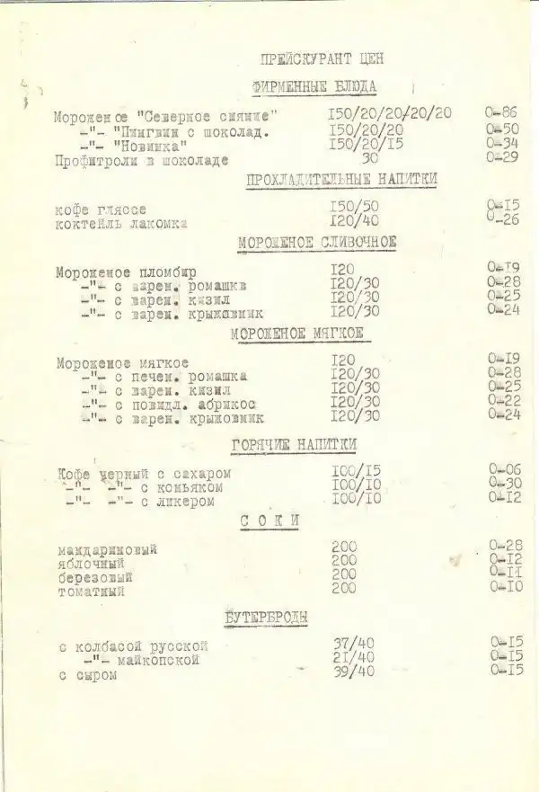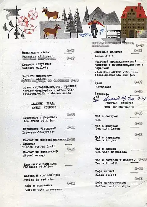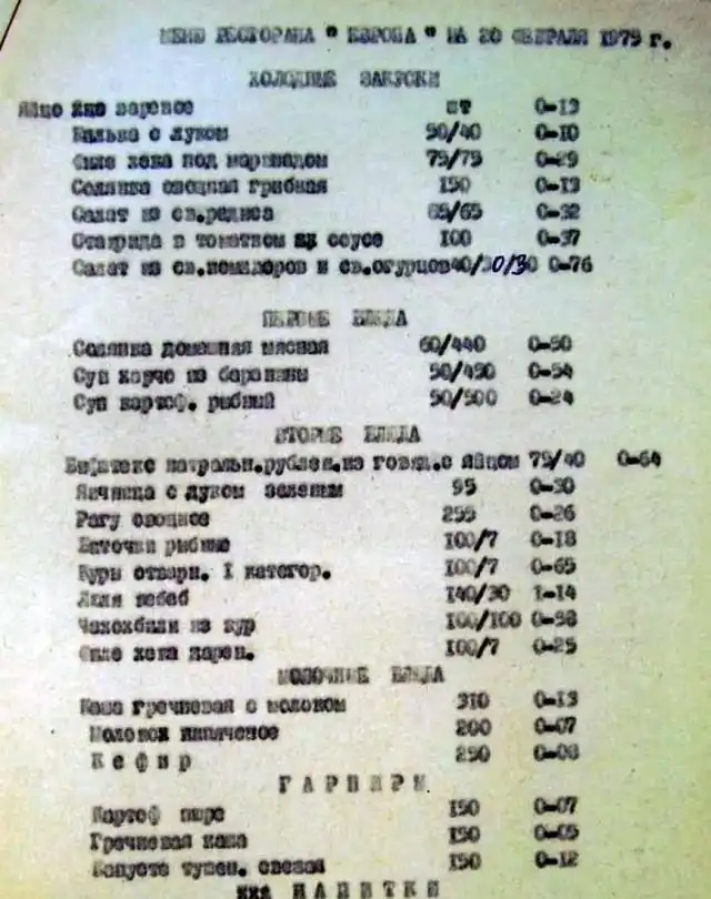 И все в таком роде - уха рыбацкая с расстегаями - 1 рубль 16 копеек, Палтус "Миньер" - 78 копеек, Осетрина горячего копчения - 89 копеек. Наслаждайтесь!
