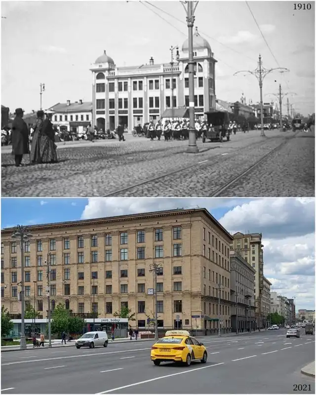 Москва. Триумфальная площадь. Рынок на старой Триумфальной площади, 1909 и 2021