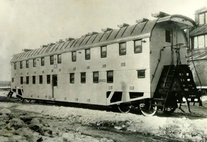11. Двухэтажный пассажирский вагон, построенный на Тверском вагоностроительном заводе в 1905 году.