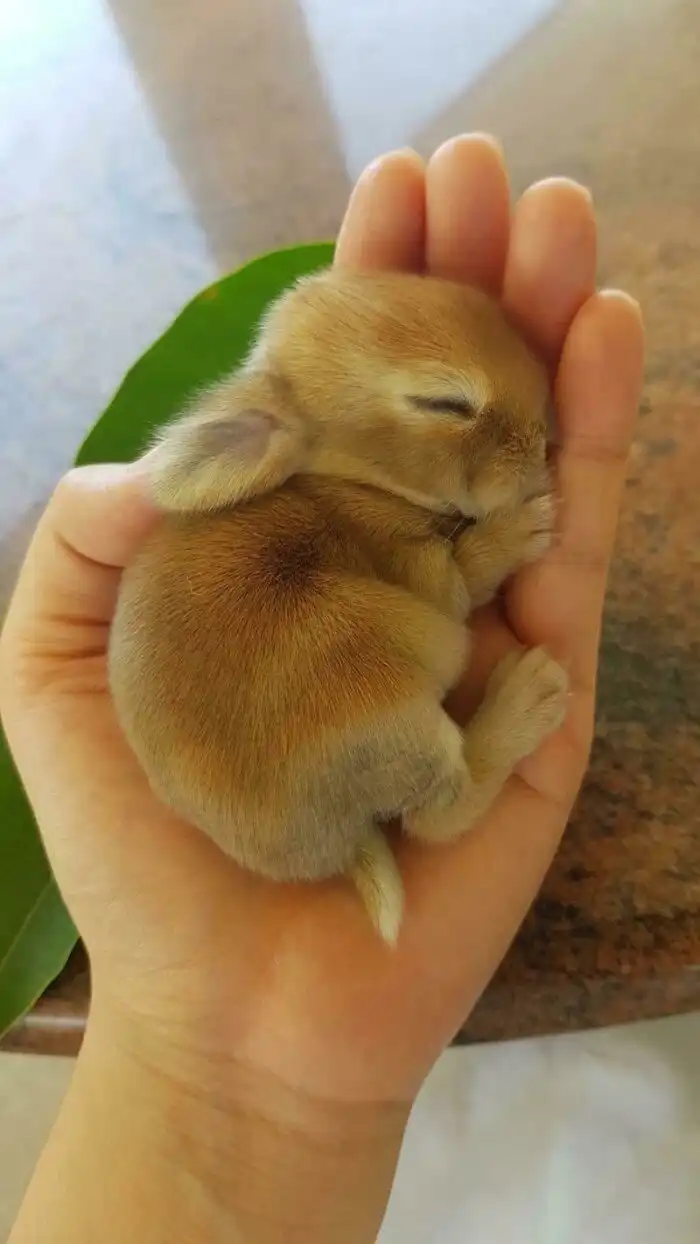 Крошечный милый кролик по сравнению с человеческой ладонью