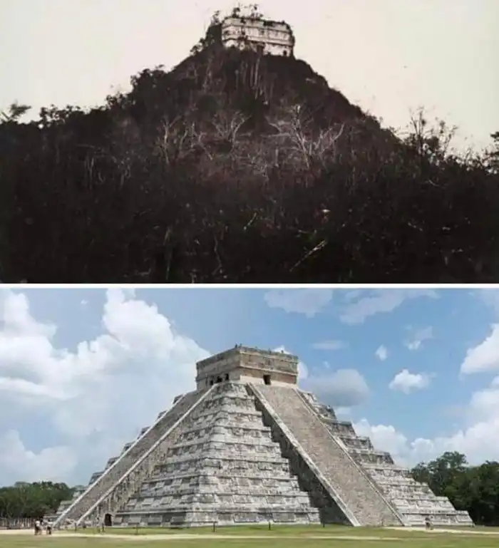 Чичен-Ица в 1892 году, когда она была открыта, и в настоящее время