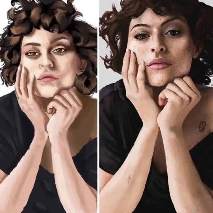 Вот как выглядят 6 лет практики - рисунок, сделанный в 2015 г., и рисунок, сделанный в 2021 г.