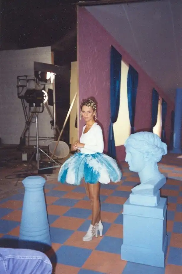 27. Певица Ирина Салтыкова на съёмках клипа «Серые глаза», 1995 год