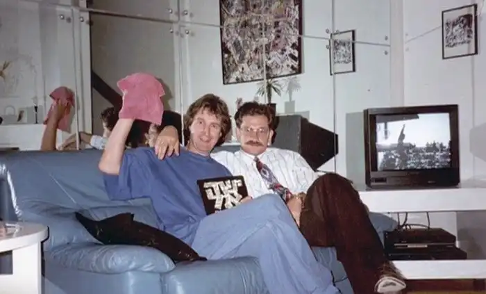 37. Выпивают видимо за любовь. Игорь Николаев и Сосо Павлиашвили на одной из частных вечеринок, 1990-е годы