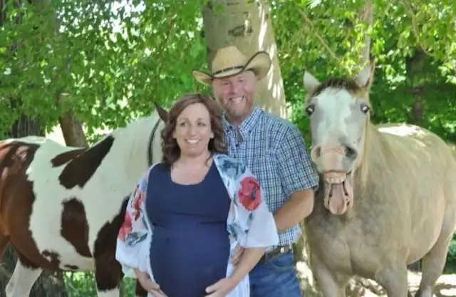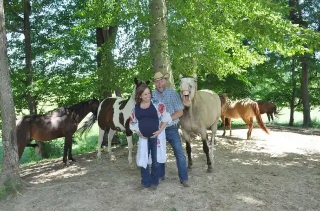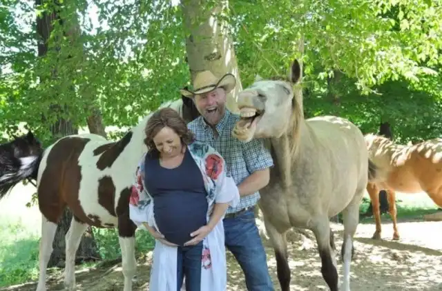 Семейная пара из США решила устроить фотосессию, посвященную скорому рождению ребенка. И они владеют несколькими лошадьми, считая их своей семьей — поэтому на семейных снимках пожелали видеть и питомцев. Фотографа такая просьба вообще не смутила, поэтому она приступила к работе. Правда, один конь захотел чуть больше внимания, и сделал фотосессию по-настоящему запоминающейся, оригинальной и очень смешной.