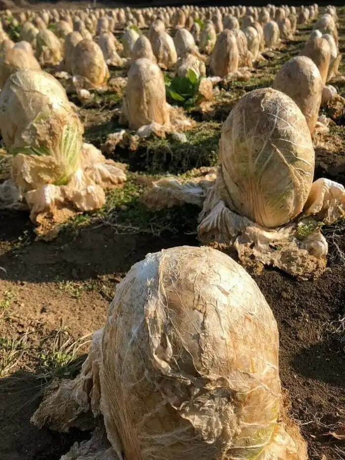 Поле капусты, защищенной от вредителей. Кажется, из этого яйца сейчас вылупится инопланетянин