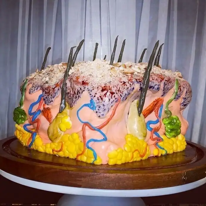 "Торт "Кожа". Я испекла его, чтобы отметить начало ординатуры по дерматологии. Коллегам понравился"