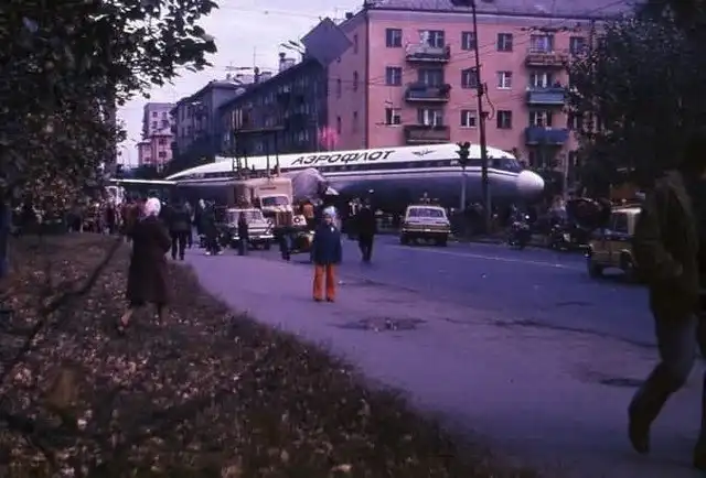 Ил-18 на yлицe Мaлышевa, Свердловск, 1977 год