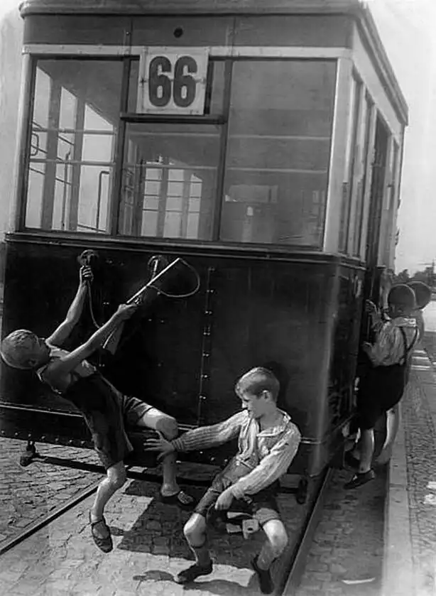 9. Дети, цепляющиеся за трамвай, Берлин, 1929 год