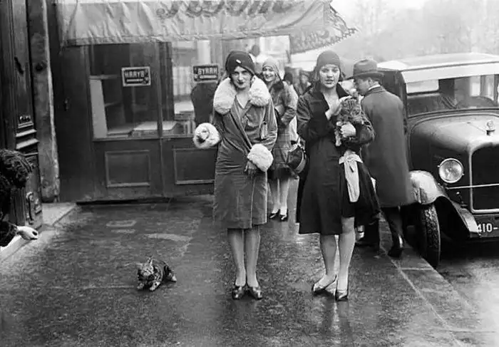 28. Молодые женщины гуляют с кошкой в ноябре 1929 года в Париже, Франция.