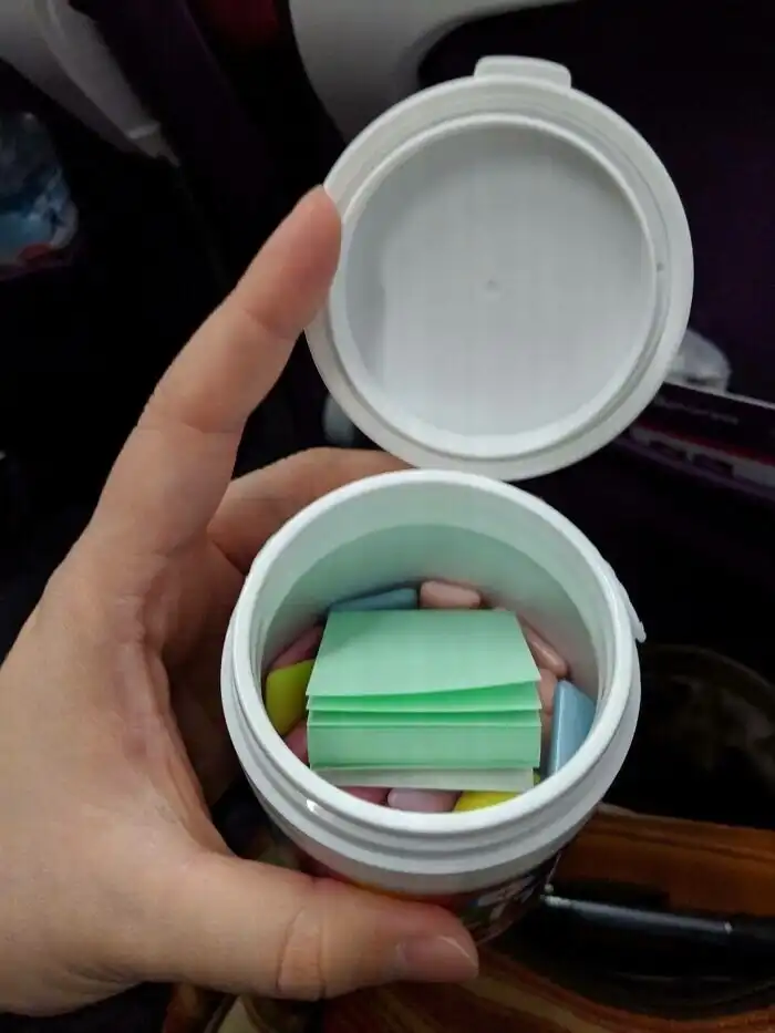 Банка японской жевательной резинки со стопкой листков внутри, чтобы было легче выбросить использованную жвачку