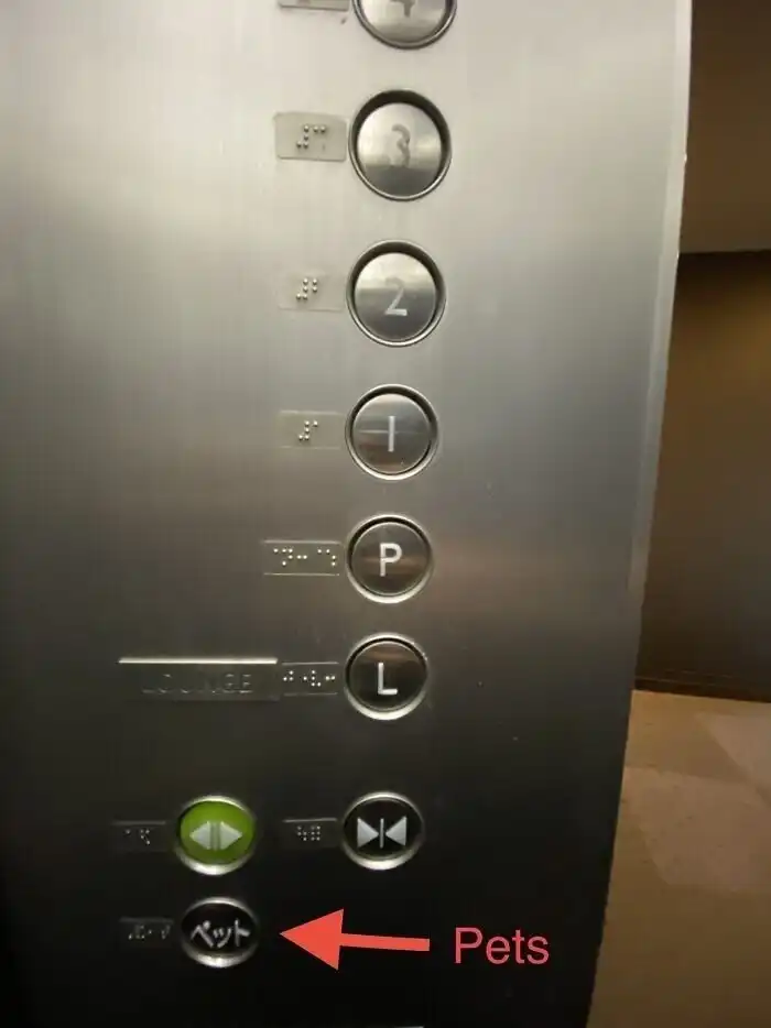 В лифте фешенебельногожилого комплекса в Японии есть отдельная кнопка для домашних животных