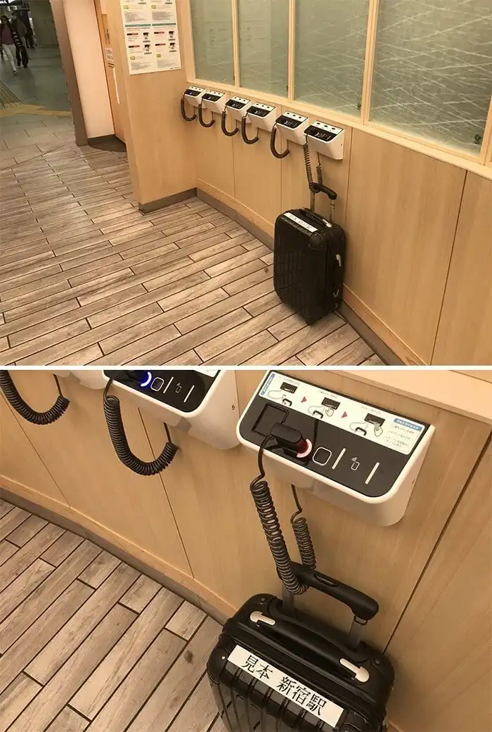Антивандальная система краткосрочного хранения багажа возле уборной на железнодорожной станции Синдзюку