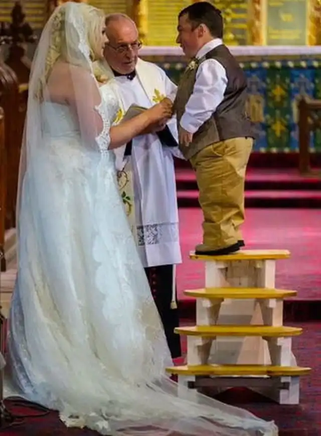 Важен ли рост человека для счастливых отношений? Пожалуй, все скажут, что нет, мол, если парень немного ниже своей девушки, то какая разница? Но а если рост кавалера. составляет 1,1 метра... это уже совсем другая история. Однако любовь - штука непредсказуемая и ее силам невозможно сопротивляться. Это доказала счастливая семейная пара из Уэльса, которая доказала, что рост любви не помеха.