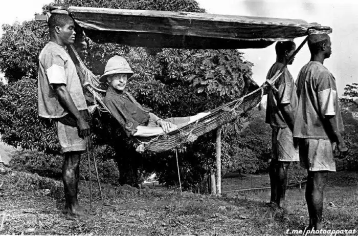 2. Офицер британской армии путешествует в гамаке. Сьерра-Леоне, 1920 год
