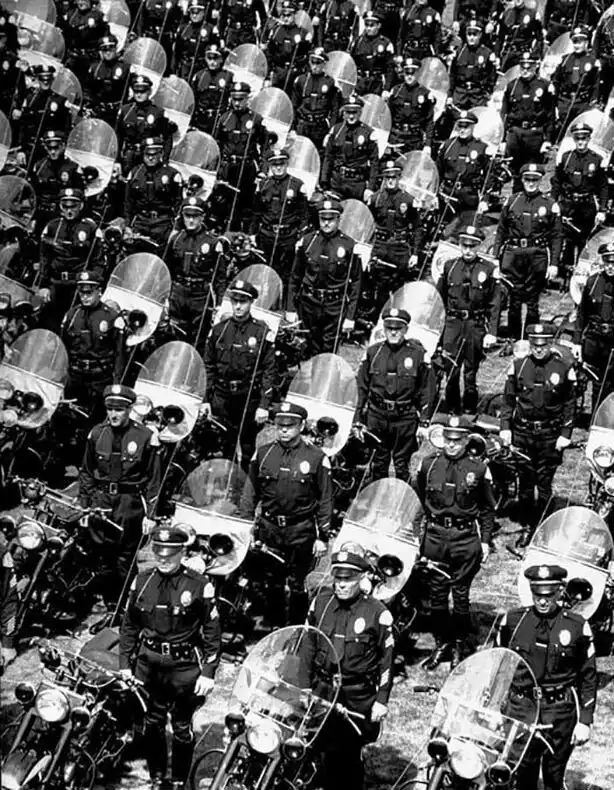 29. Полицейские мотоциклисты на построении. США, 1960-е