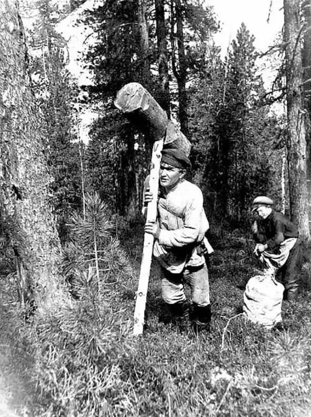 26. Шорец с рыбой - тайменем, пойманным в большом пороге реки Мрассу. 1913. Топографическая экспедиция в Горную Шорию