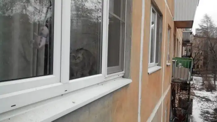 18. «Я промышленный альпинист. Вот такие глаза у кошек, когда они видят меня с другой стороны окна»