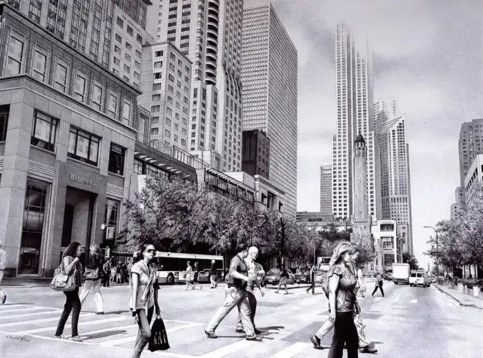 То, что когда-то было детским хобби, переросло в нескончаемую страсть и преданность городской теме. Полетаев исследовал многие области живописи, включая масло, карандаш, скульптуру и другие изобразительные техники, но рисование шариковой ручкой – это то, в чем художник действительно достиг высочайшего уровня.