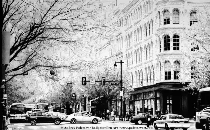 Андрей Полетаев – один из первопроходцев и провидцев направления Ballpoint Pen Art (искусство рисования шариковой ручкой). Его любовь к уличной жизни и её изображению быстро стала законодателем мод в области рисованных городских пейзажей. Непревзойденное техническое совершенство и внимание к деталям однозначно выделяют его из общей массы художников популярного направления.