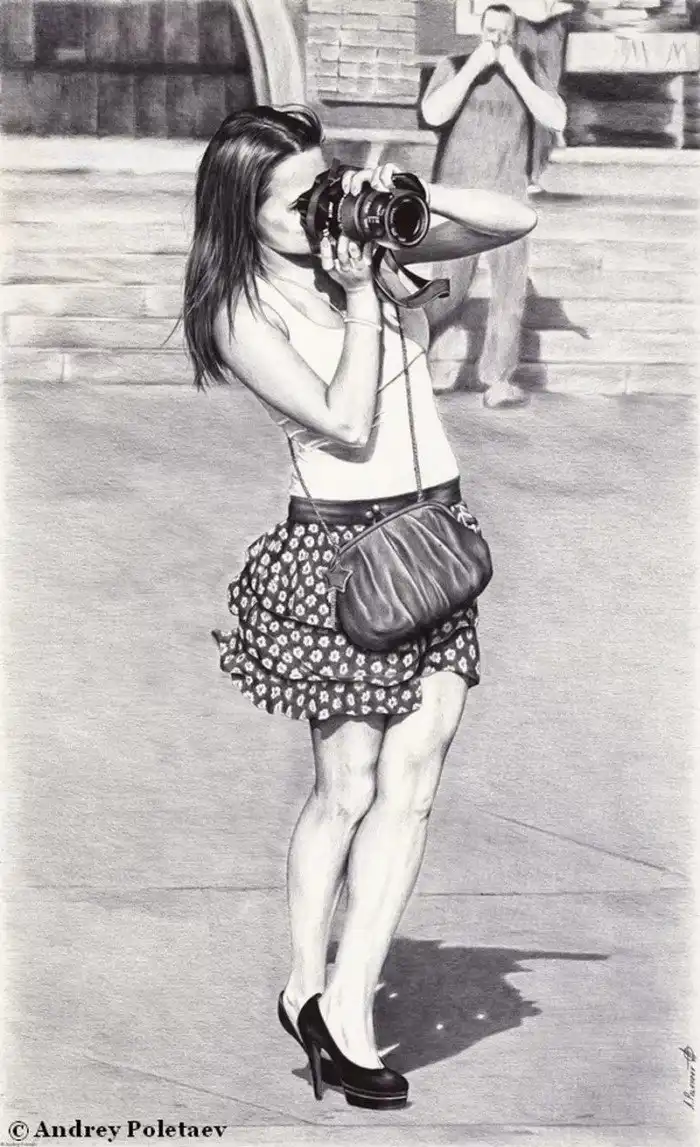 И вправду, сложно представить, какая нужна точность руки, какое провидческое зрение, для того чтобы с помощью двух цветов создать десятки оттенков, а с помощью одной тоненькой линии придавать изображению трехмерный объем. Наверное, в этом и кроется секрет безусловного успеха Андрея Полетаева.