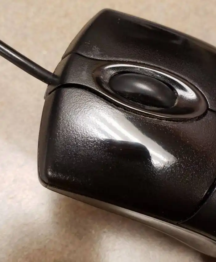 3. Офисная компьютерная мышь, натертая в процессе эксплуатации до зеркального блеска