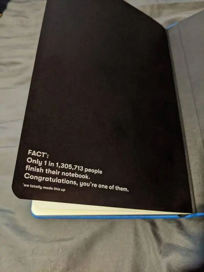 16. "Факт: только один из 1 305 713 человек заканчивает записную книжку до конца. Поздравляем! Вы такой человек"