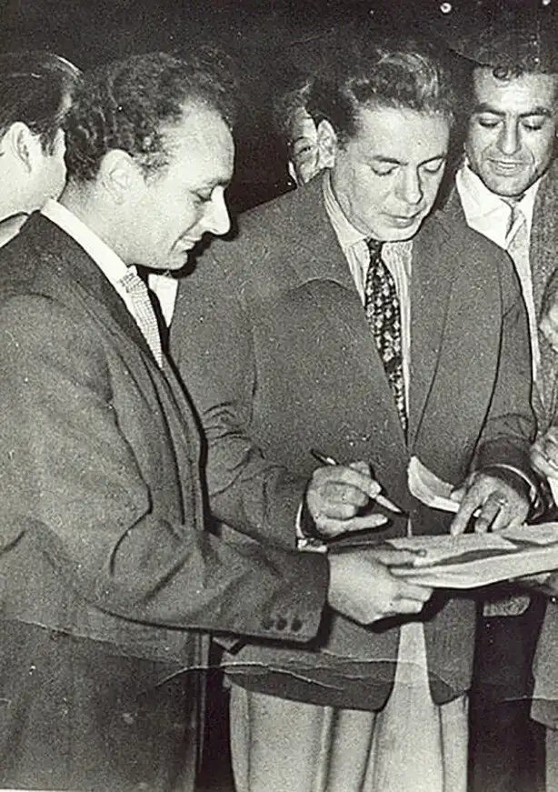 27. Аркадий Райкин раздаёт автографы, слева - его лучший автор Михаил Жванецкий, начало 70 - х