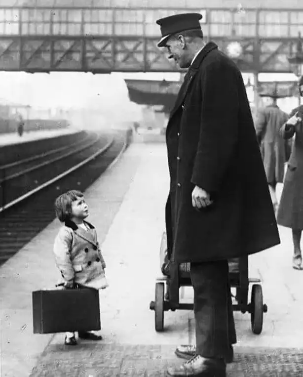 31. ''Маленькая пассажирка спрашивает дорогу''. Бристольский железнодорожный вокзал, Англия, 1936 год. Фотография Джорджа У. Хейлза