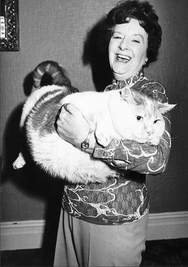 34. Хильда Джон и ее шестилетний кот Томас О'мэлли, вес которого составлял 19 килограмм. Англия, 1977 год