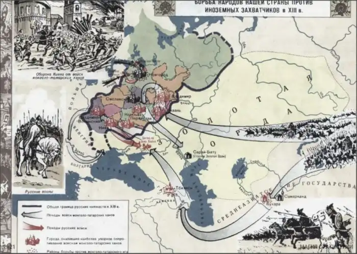 На второй странице показаны все войны, которые происходили XIII веке. В основном, это были лишь оборонительные действия против монголо-татарского ига.