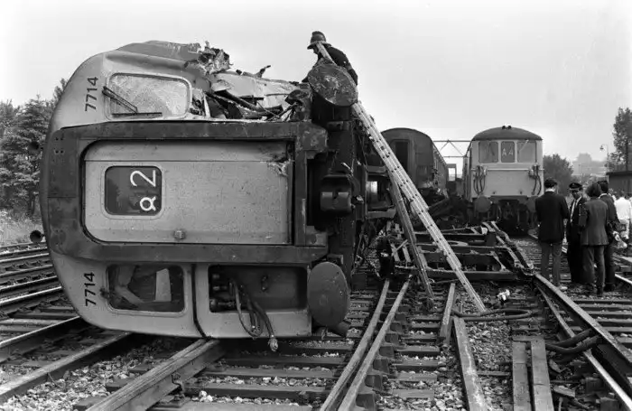 9. 4 июля 1971 года. Англия, станция Сурбитон. Пассажирский поезд столкнулся с товарным поездом, сошедшим с рельсов.