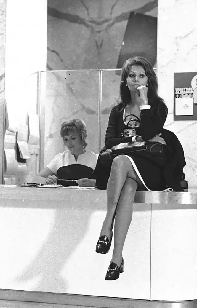 25. 8 июля 1971 года. Софи Лорен в холле офиса газеты New York Daily News. Фото Keith Torrie.