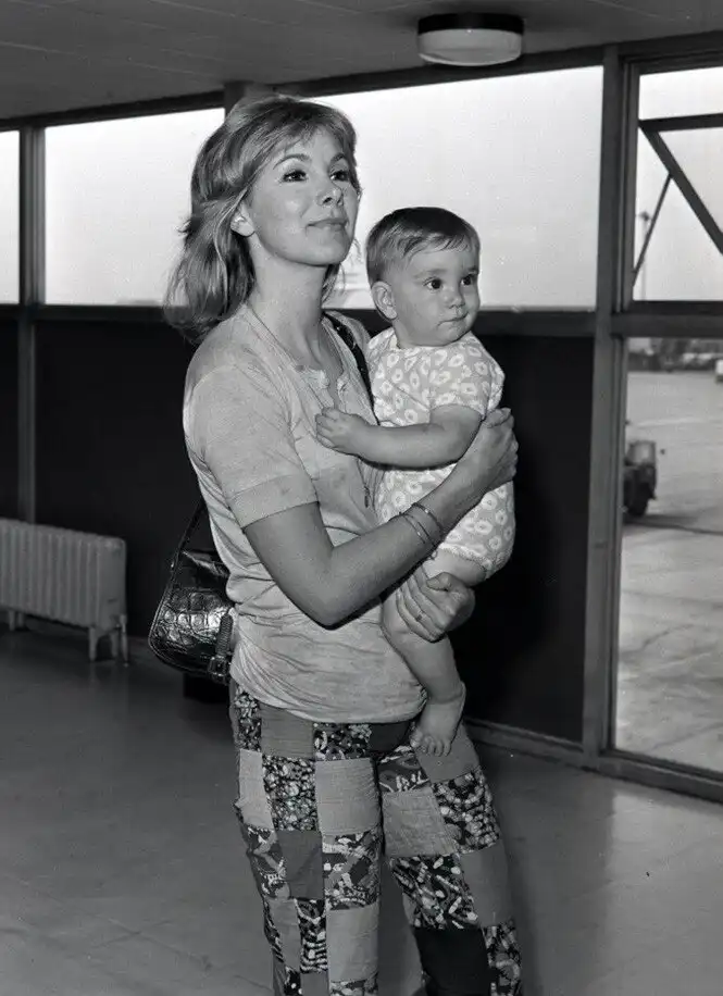 35. 12 июля 1971 года. Лондон, аэропорт Хитроу. Британская актриса Сьюзан Хэмпшир с сыном Кристофером.