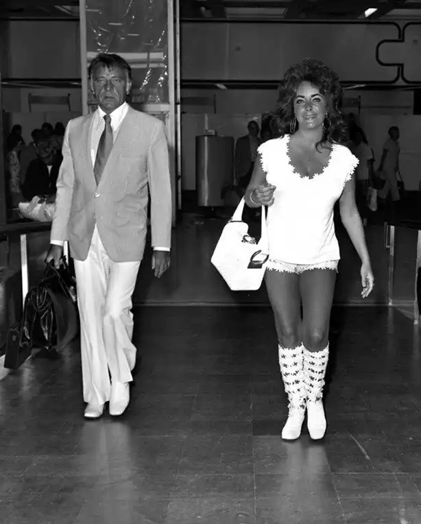 66. 29 июля 1971 года. Лондон, аэропорт Хитроу. Элизабет Тейлор и ее муж Ричард Бертон.