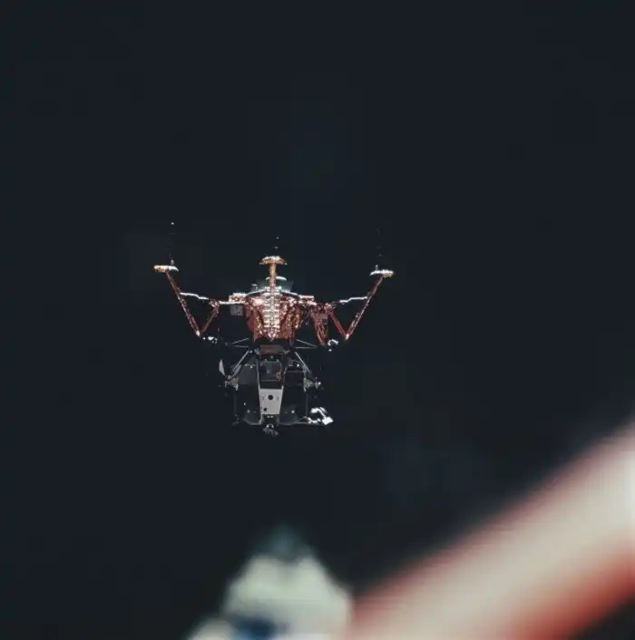 67. 30 июля 1971 года. Лунный модуль корабля Аполлон-15 после отделения от командного модуля перед посадкой на Луну.