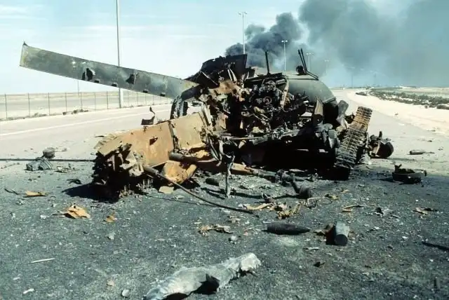 Полностью уничтоженный авиаударом коалиции иракский танк. Кувейт, 1991 год.