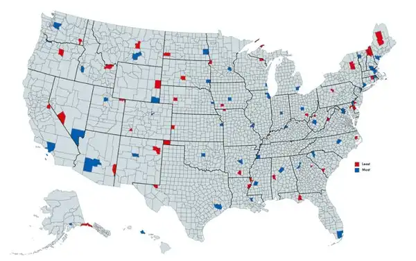 20. Самые населенные и наименее населенные округа каждого штата в США