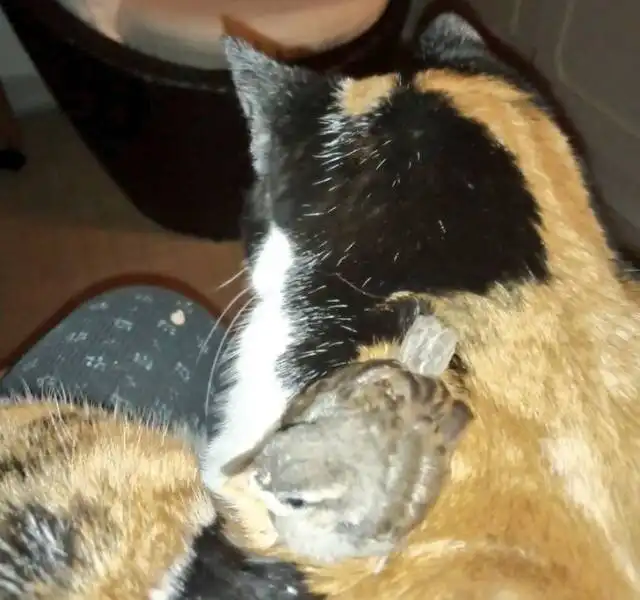"В дом моей бабушки залетел воробей. Больше всех о птичке заботилась ее кошка"