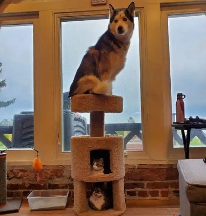"Мы купили домик для наших кошек, а он понравился еще и нашей собаке!"