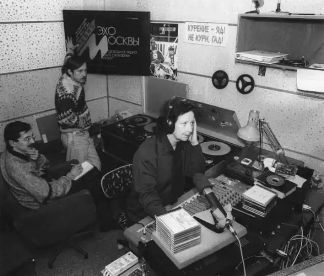 Студия радиостанции "Эхо Москвы" в доме на Никольской улице. Начало 90-х