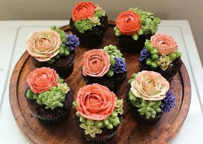32. Капкейки "Цветущие суккуленты"