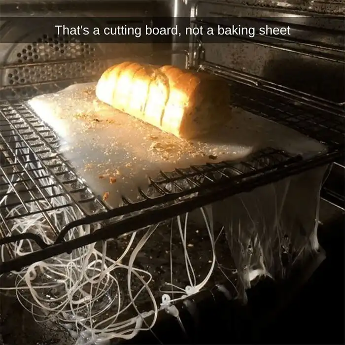 Когда понимаешь, что убрал в духовку рулет на разделочной доске вместо противня