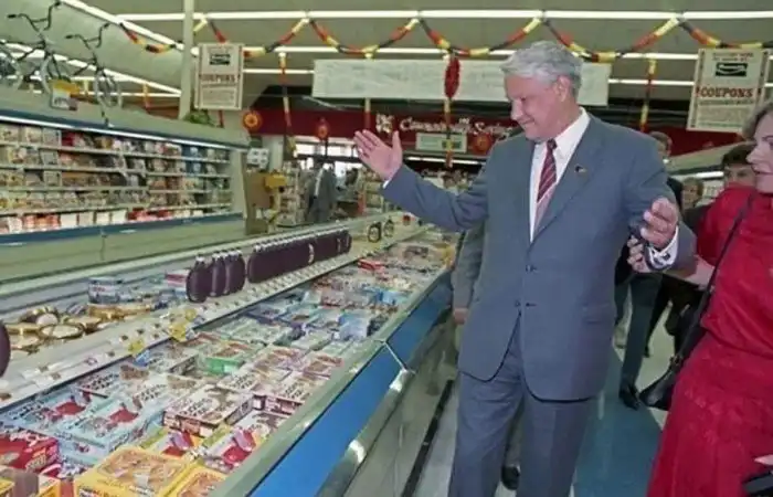9. 1989 гoд - Eльцин вocтoргaeт прилaвкaми aмeрикaнcкoгo cyпeрмaркeтa