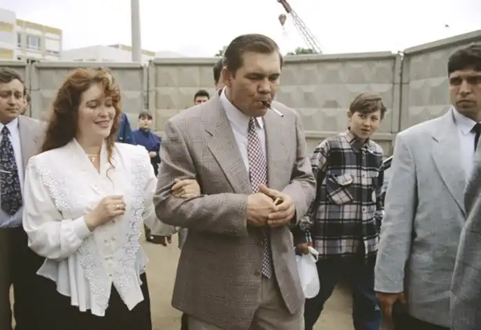 36. Кандидат на пост Президента РФ Александр Лебедь с супругой Инной идут по московской улице после голосования, июнь 1996 год